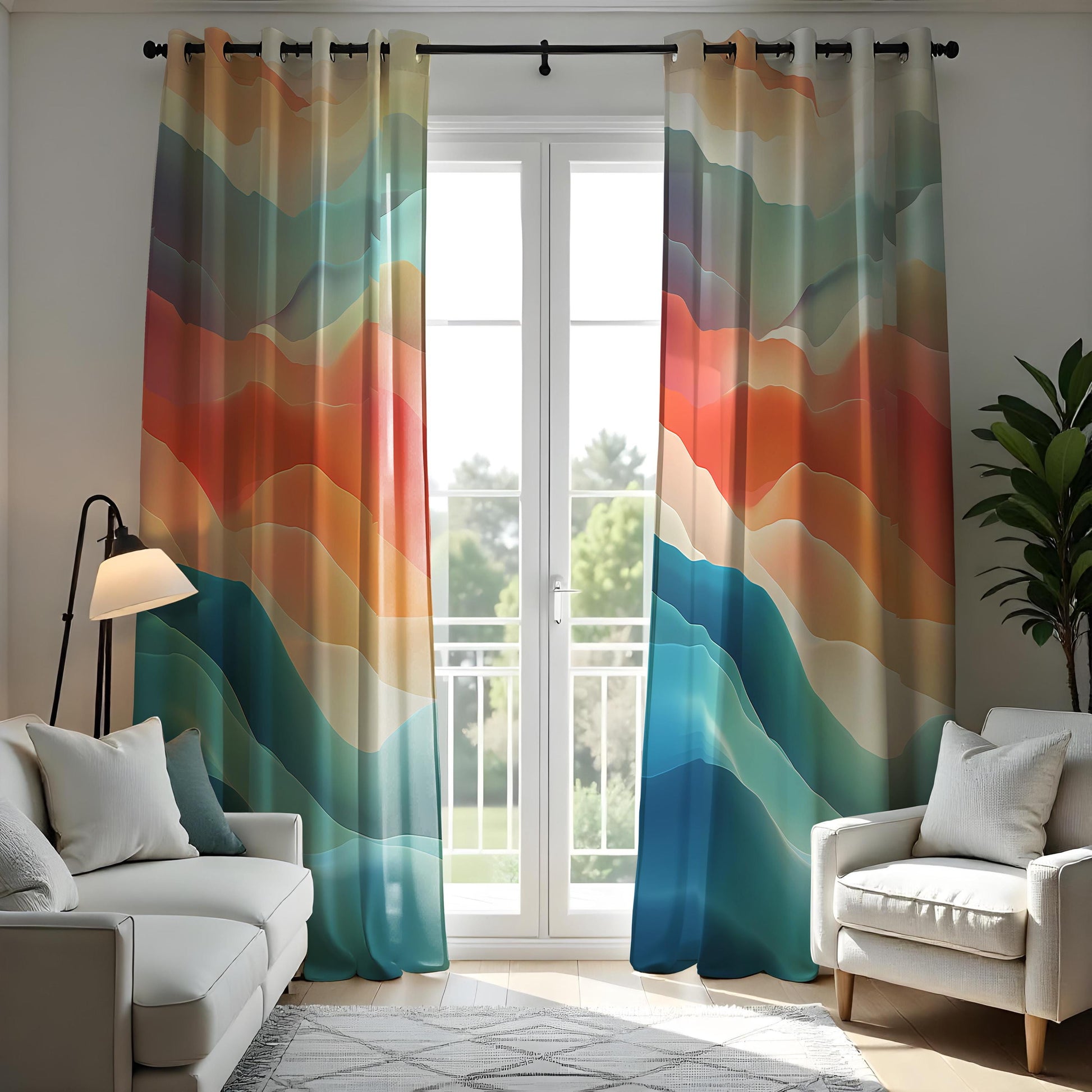 Abstract Colorful Wave Curtain, Soft Watercolor Gradient Drape
