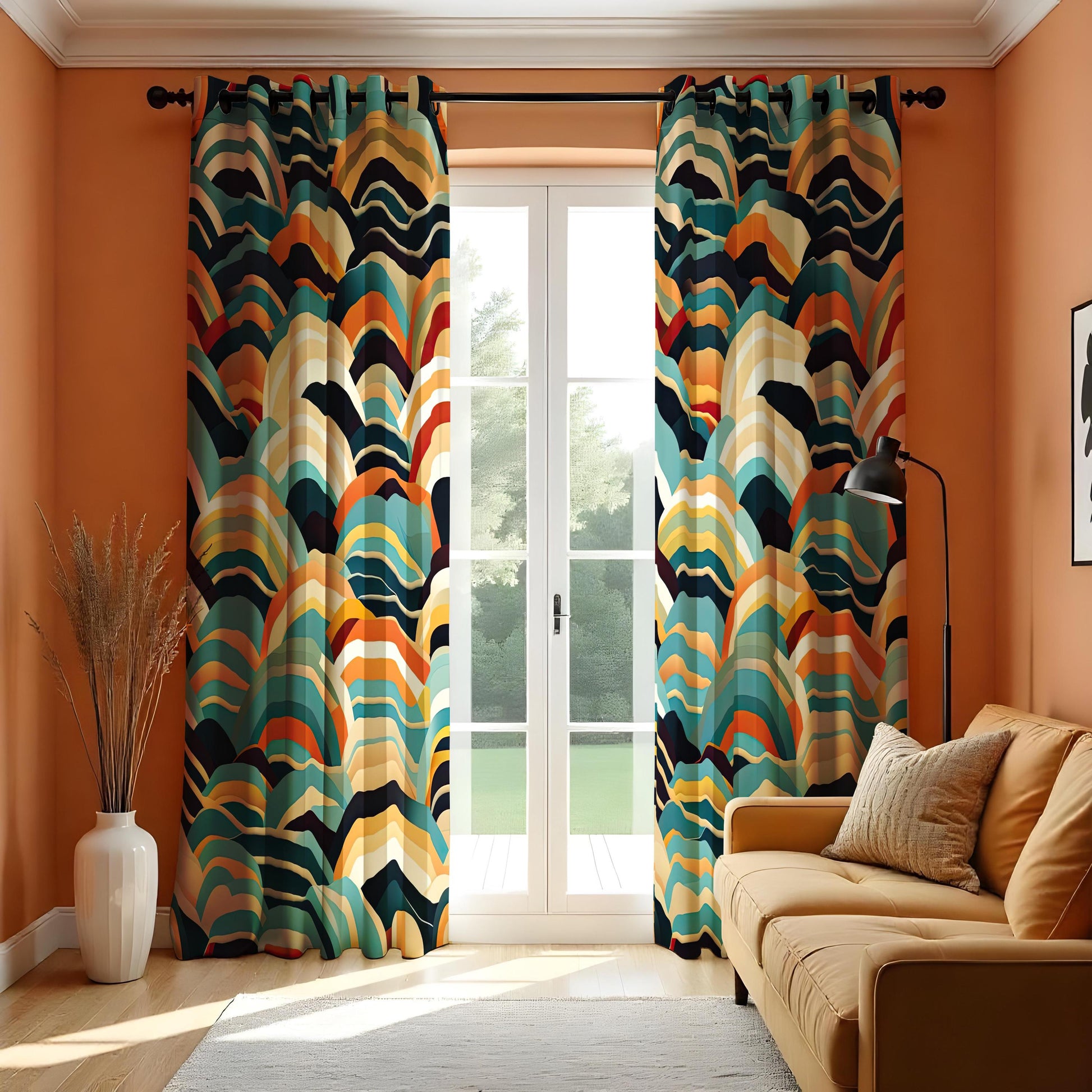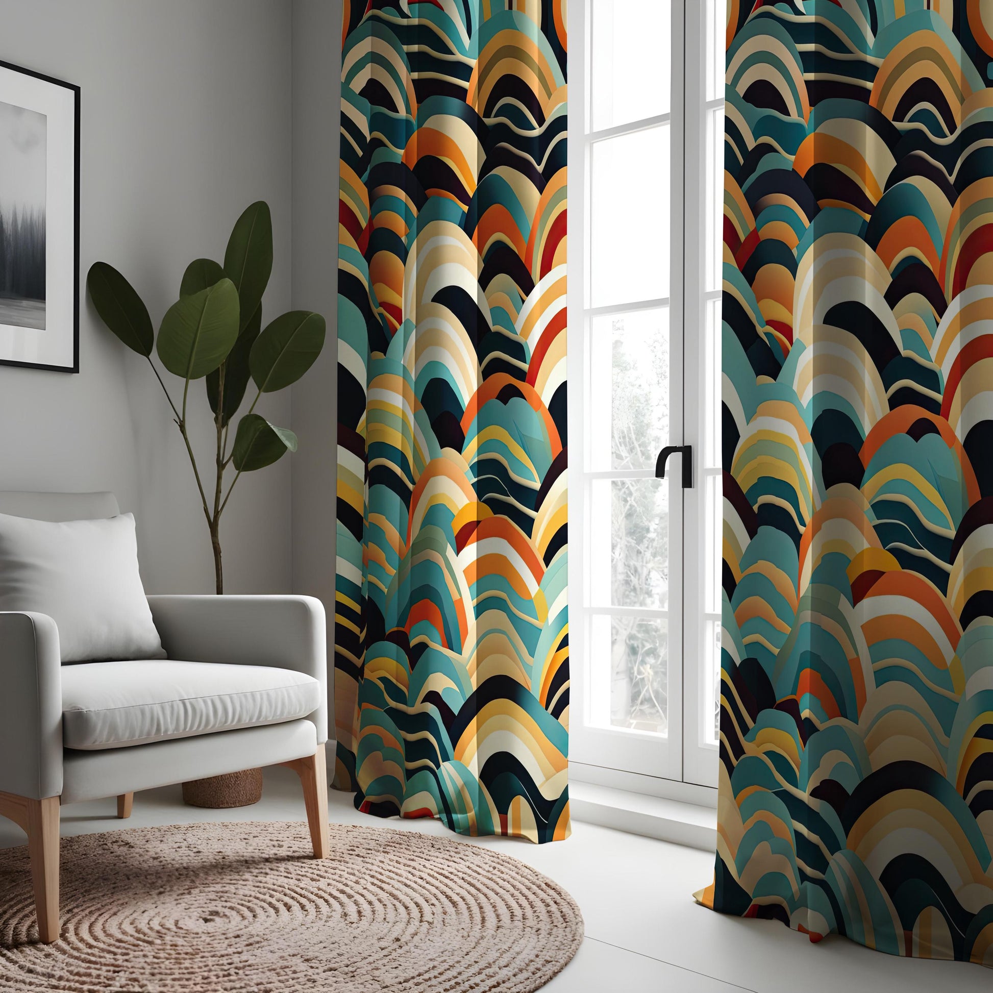 Abstract Wave Pattern Curtains, Bold Colorful Drapes in Blue