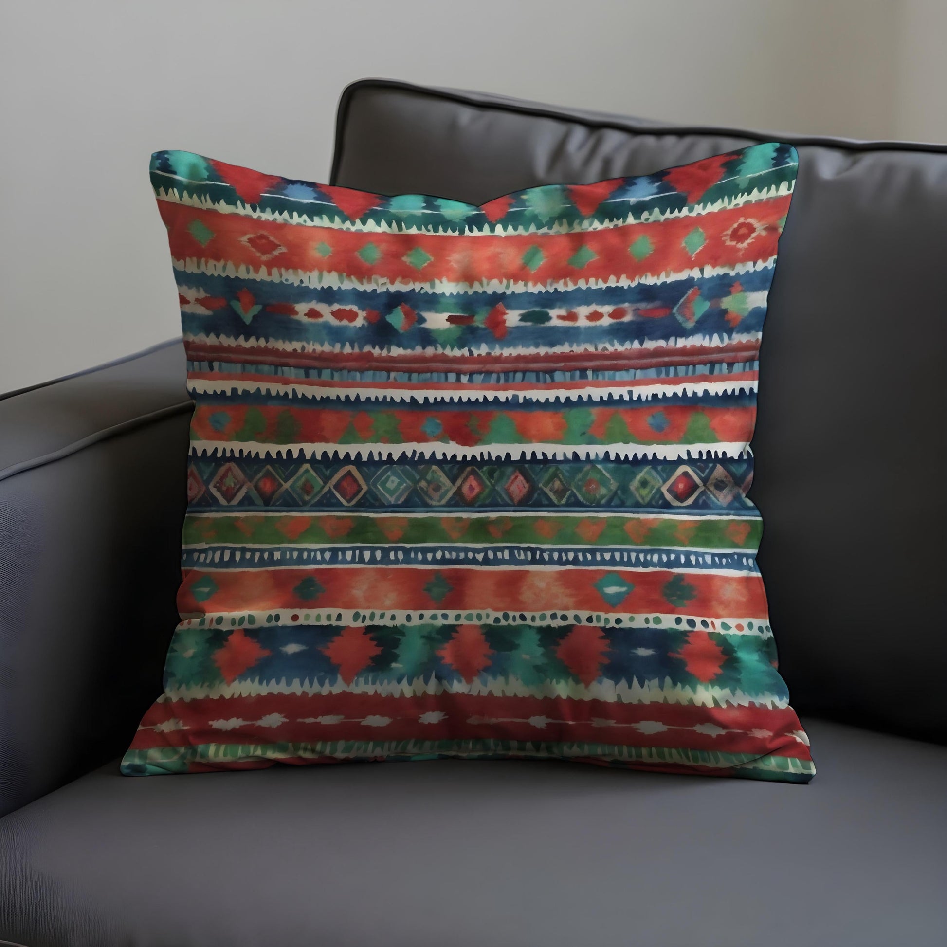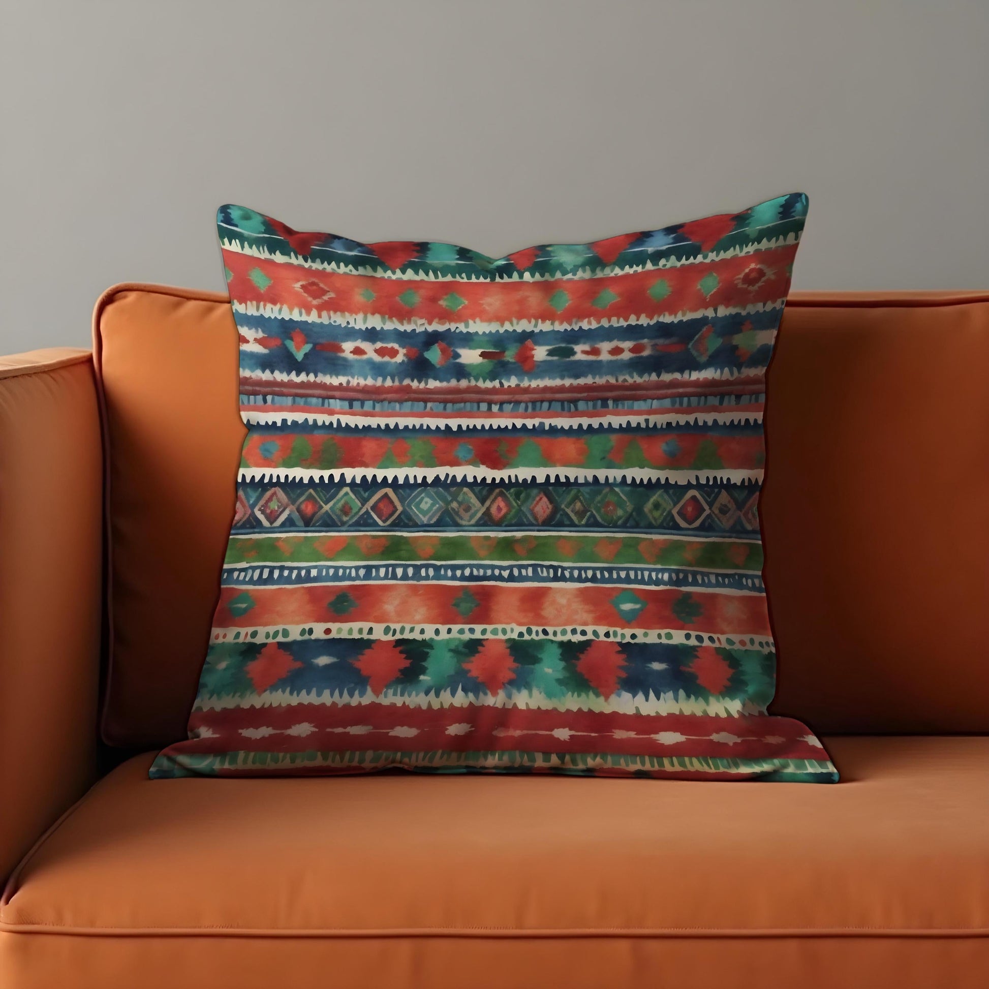 Boho Tribal Aztec Cushion Cover, Colorful Ethnic Print Pillow Case