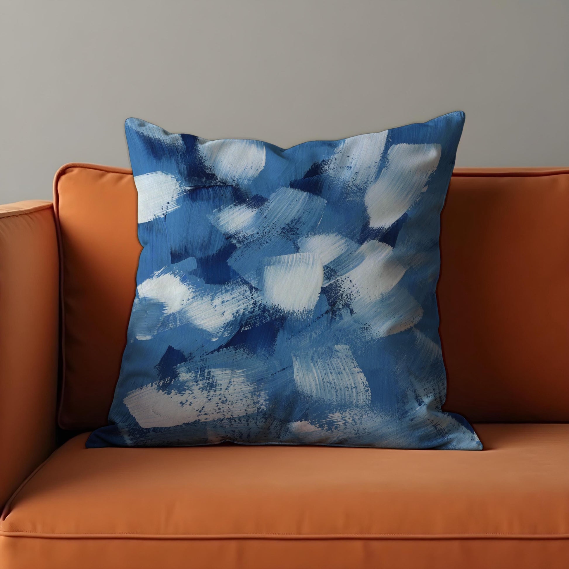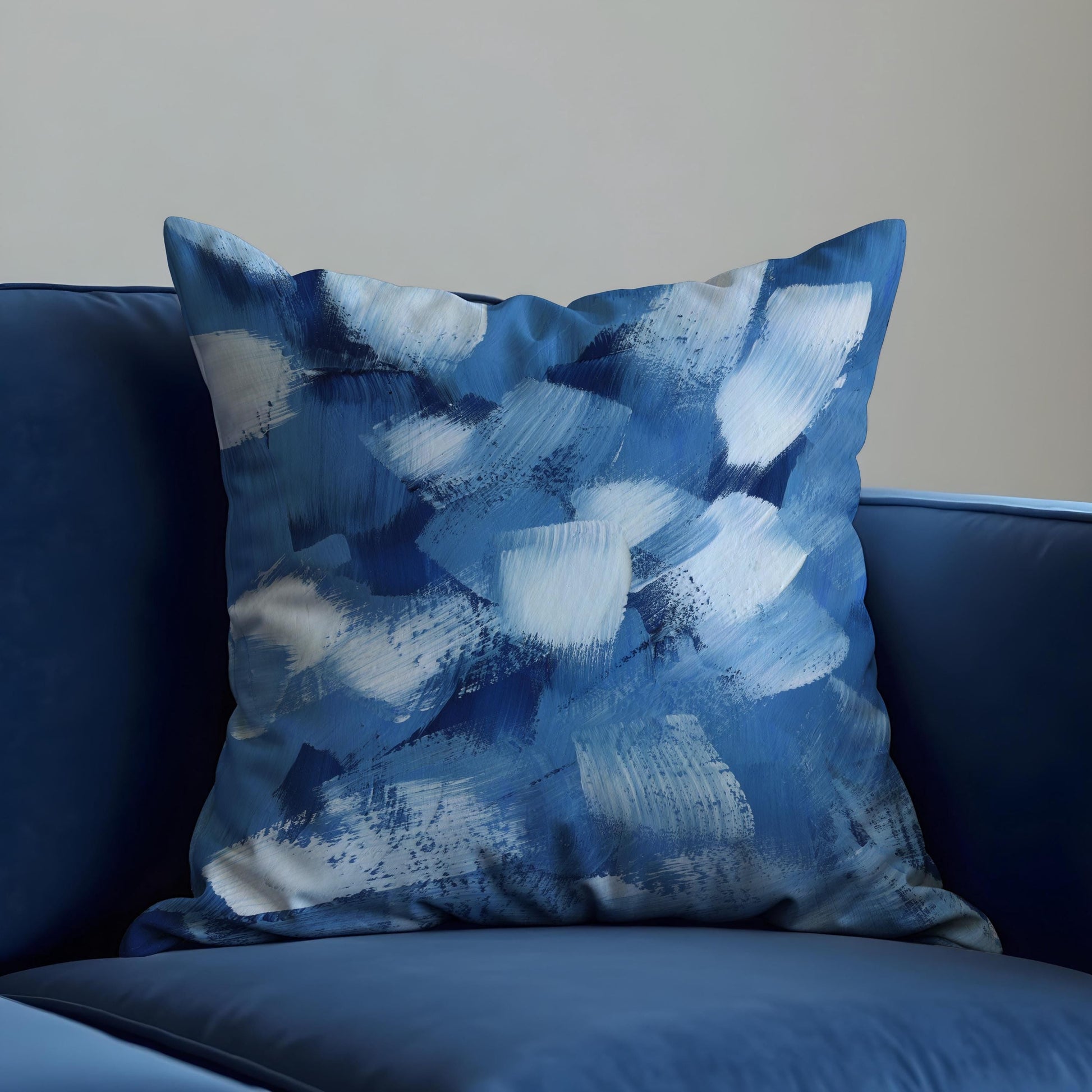 Bring an artistic edge to your space with this striking cushion cover featuring abstract brushstroke textures in rich shades of navy, cobalt, and crisp white. This modern painterly design adds depth and drama to any interior, perfect for contemporary homes or creative studios.