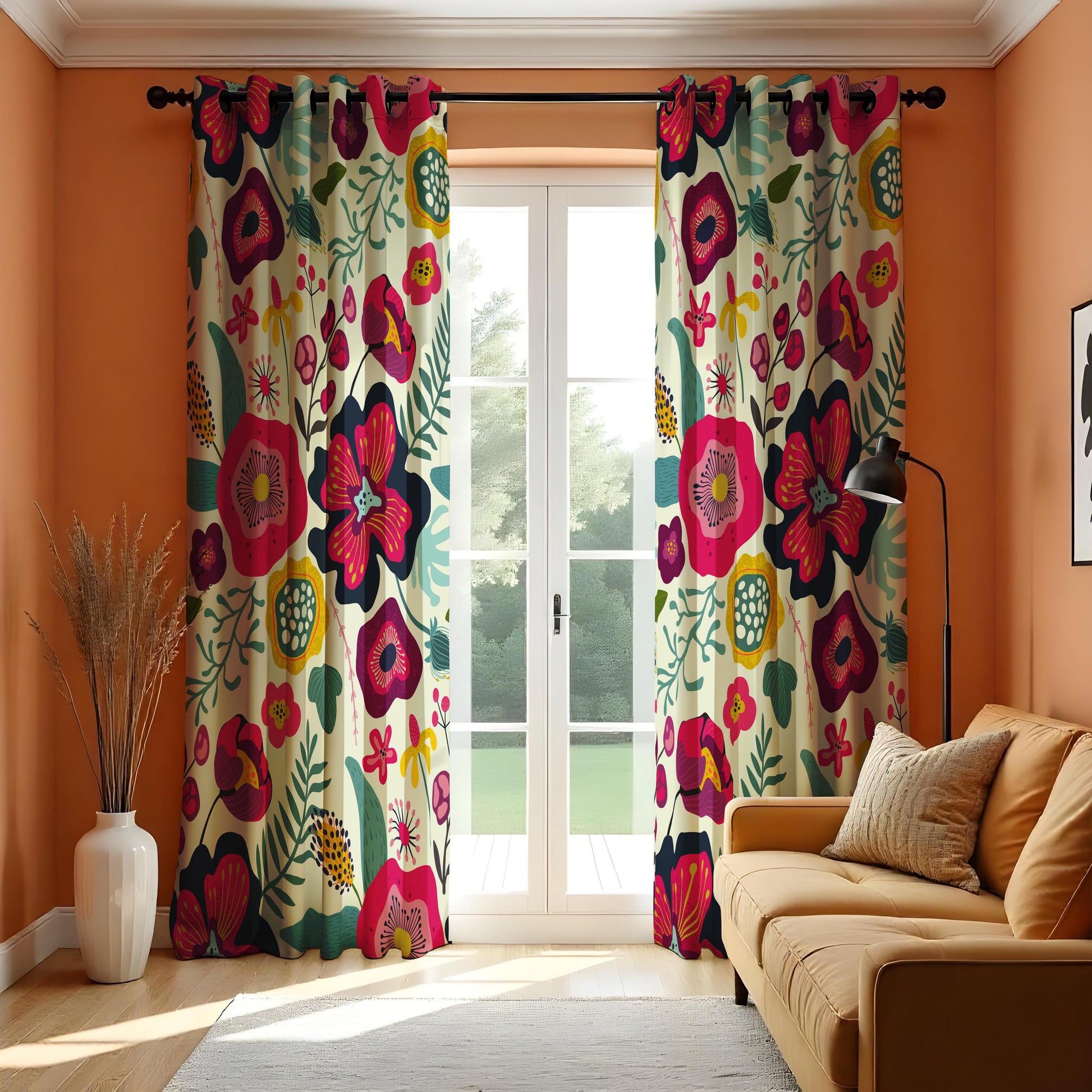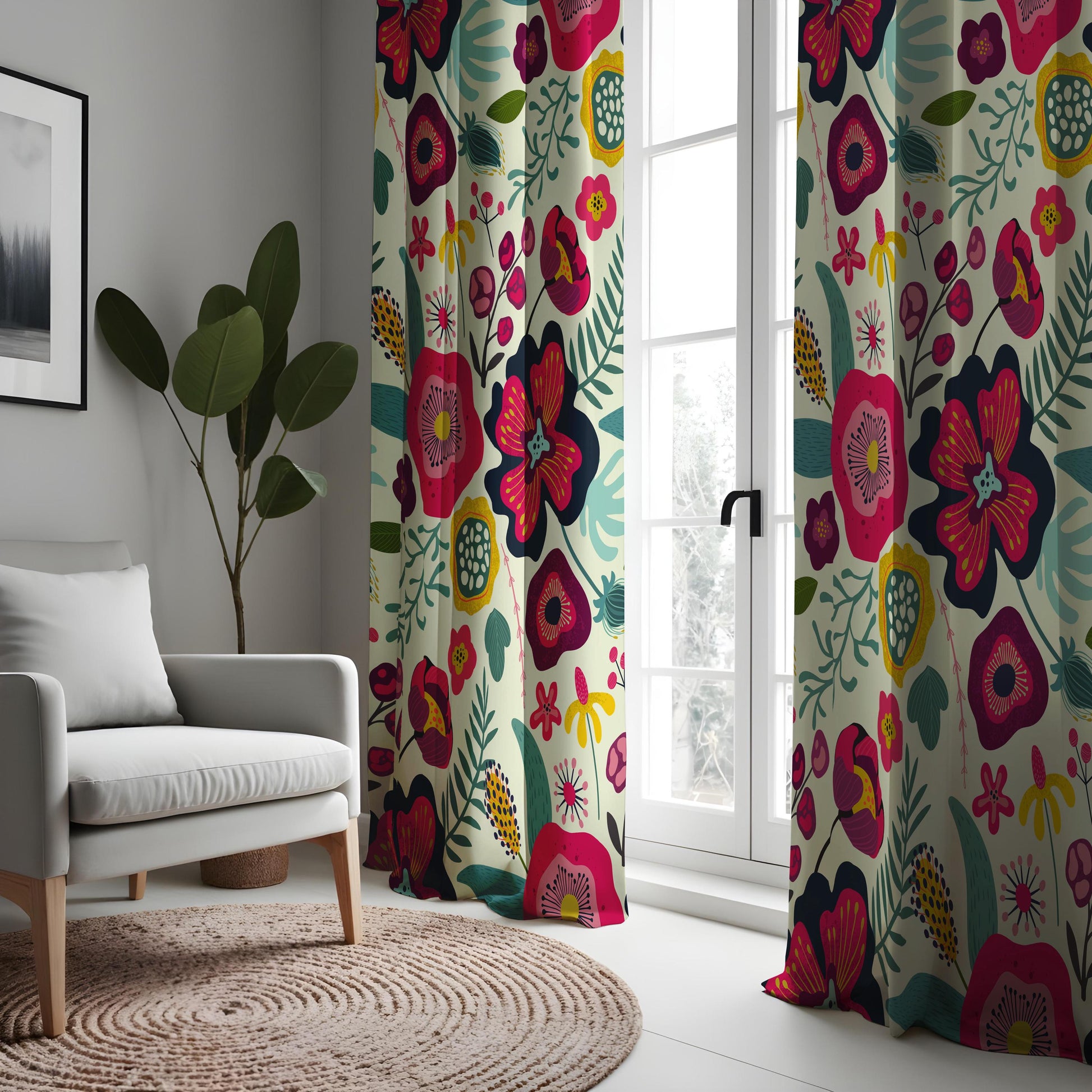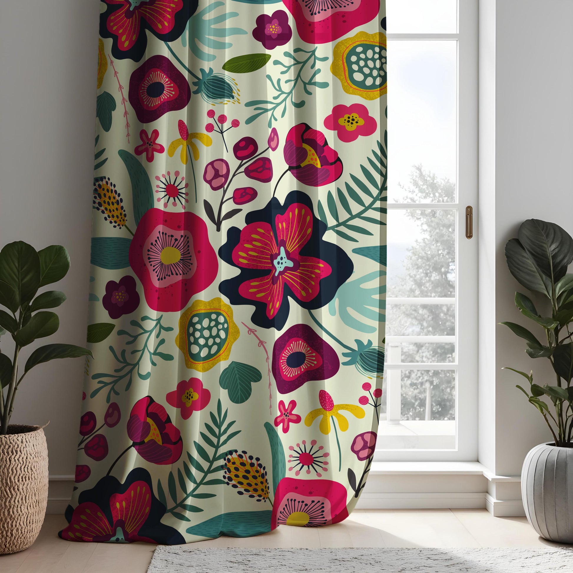 Make a statement with these Bold Floral Curtains, featuring a vibrant pink and navy blue botanical print. Designed for those who love rich colors and striking patterns, these curtains add a boho-chic touch to any space.