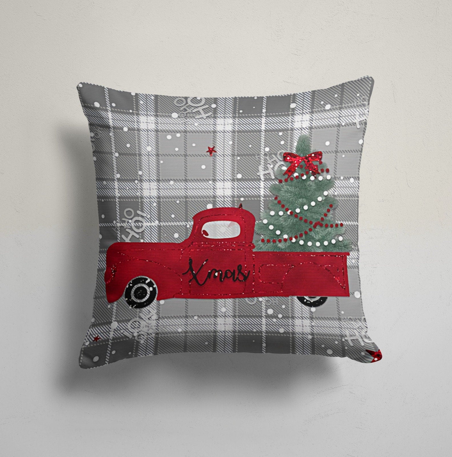 Christmas Red Truck Deer and Bell Printed Throw Cushion Cover