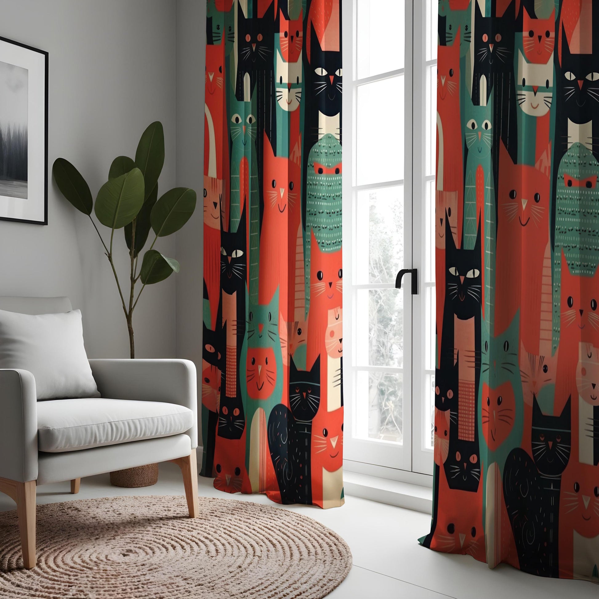 Add a fun and playful touch to your space with this Fun Cat Pattern Curtain! Featuring adorable cartoon cats in a bold and colorful design, these drapes bring charm and personality to any room.