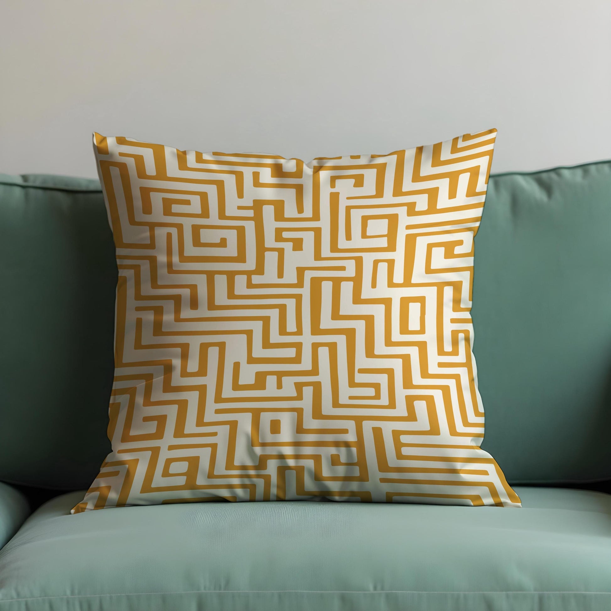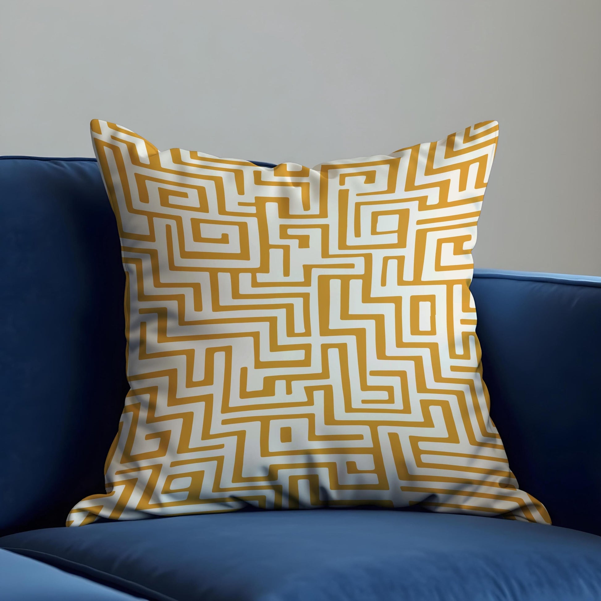 Add a touch of contemporary style to your home with this eye catching maze pattern cushion cover. The bold yellow and white geometric design brings a modern, minimalist flair to any space, perfect for a vibrant, yet simple decor.