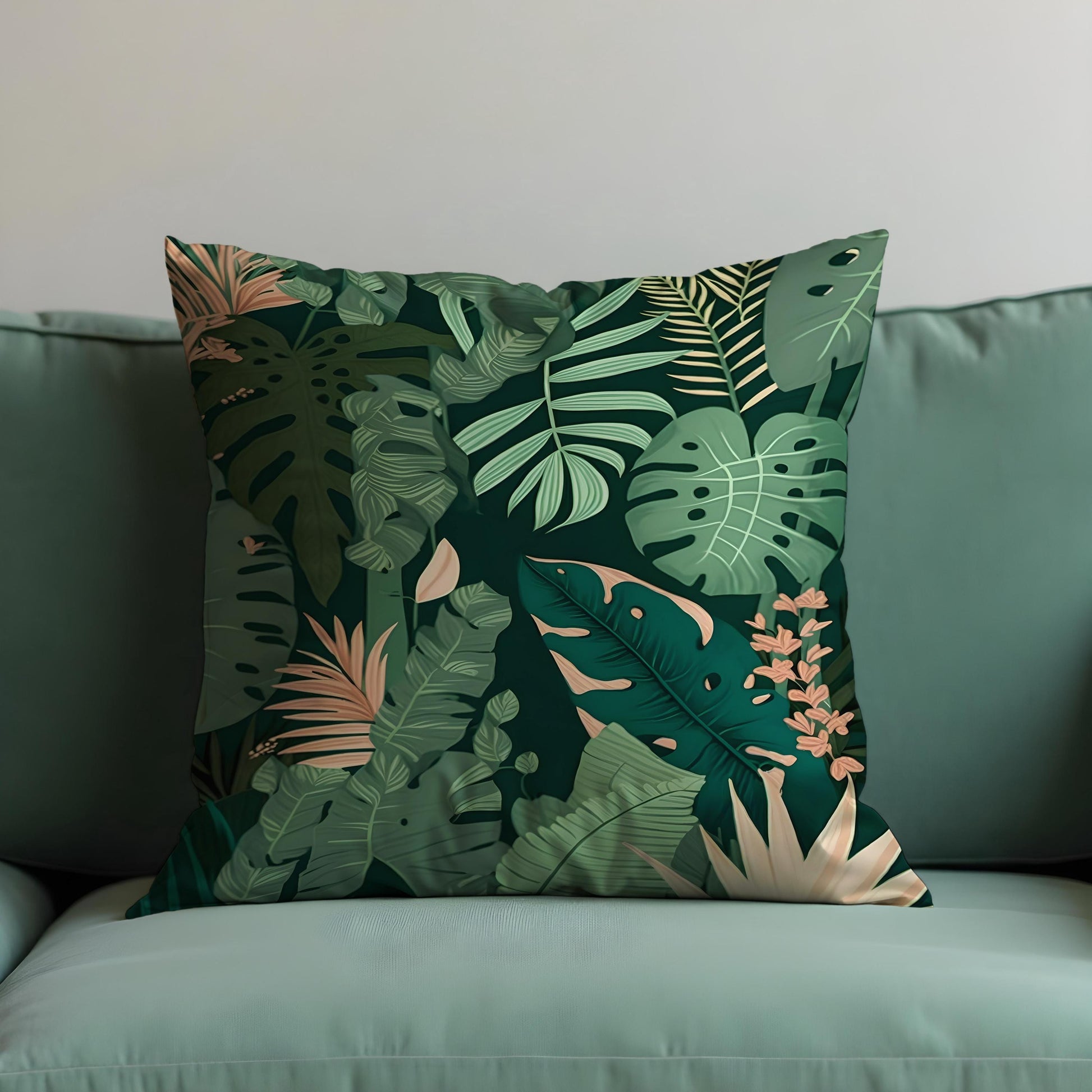 Tropical Leaf Cushion Cover, Monstera and Palm Plant Pillow Cover