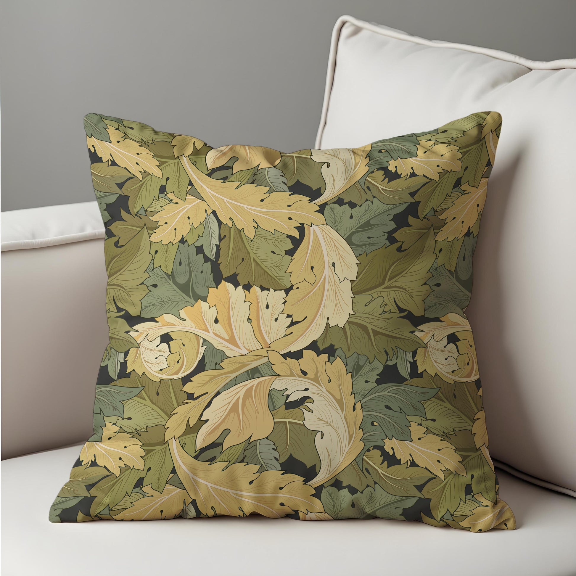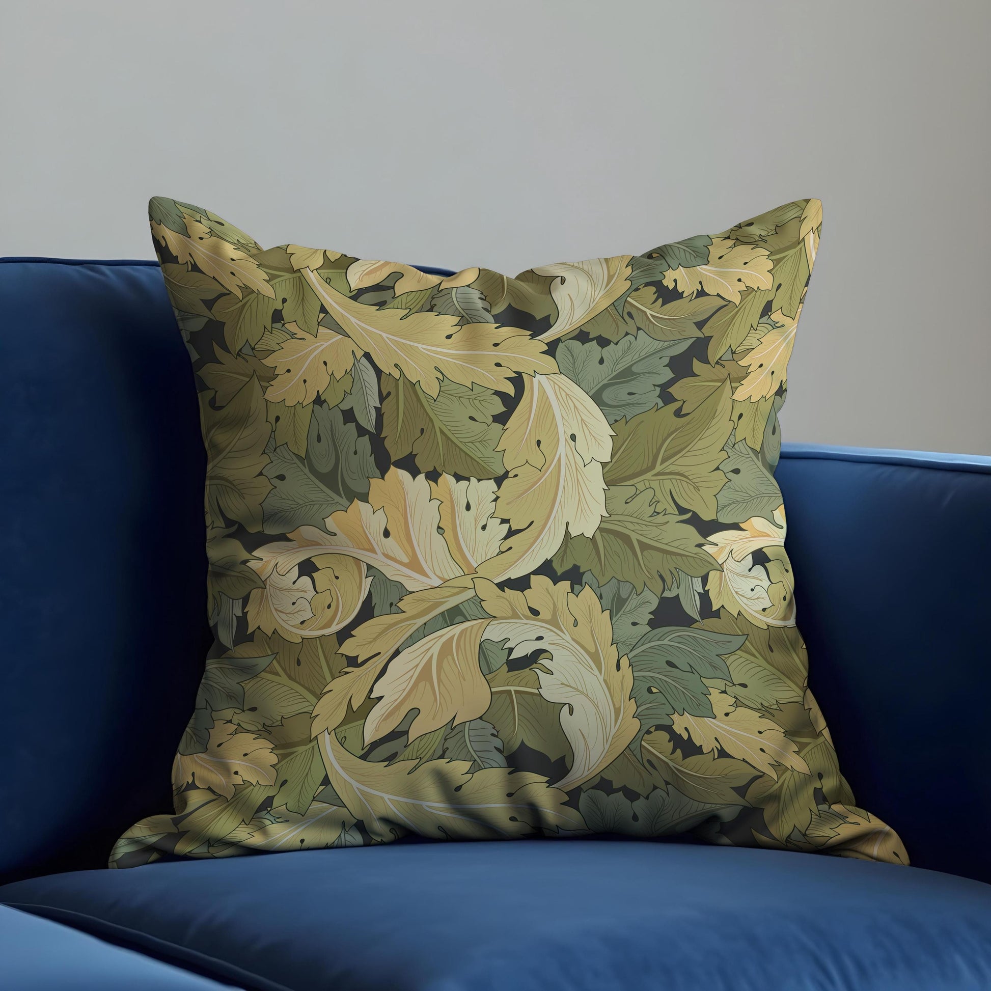 Embrace the timeless beauty of nature with this ornate botanical cushion cover featuring intricate golden and olive toned leaves. A perfect accent for cozy autumn vibes or classic interiors with a vintage twist.