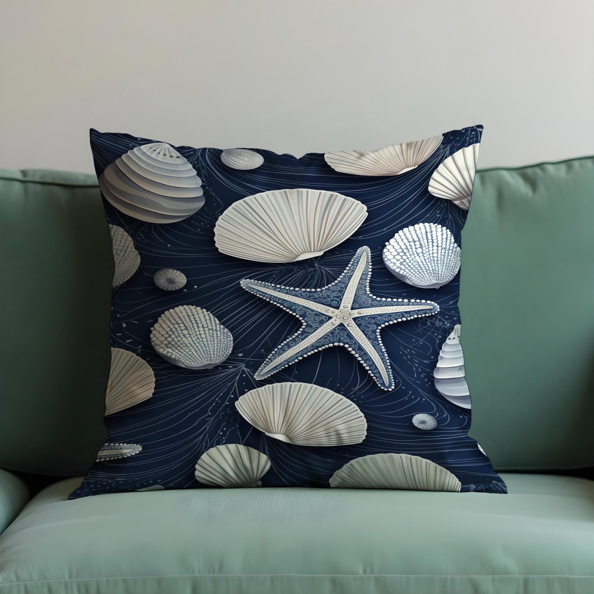 Nautical Seashell Starfish Cushion Cover, Coastal Beach Decor Pillow Case