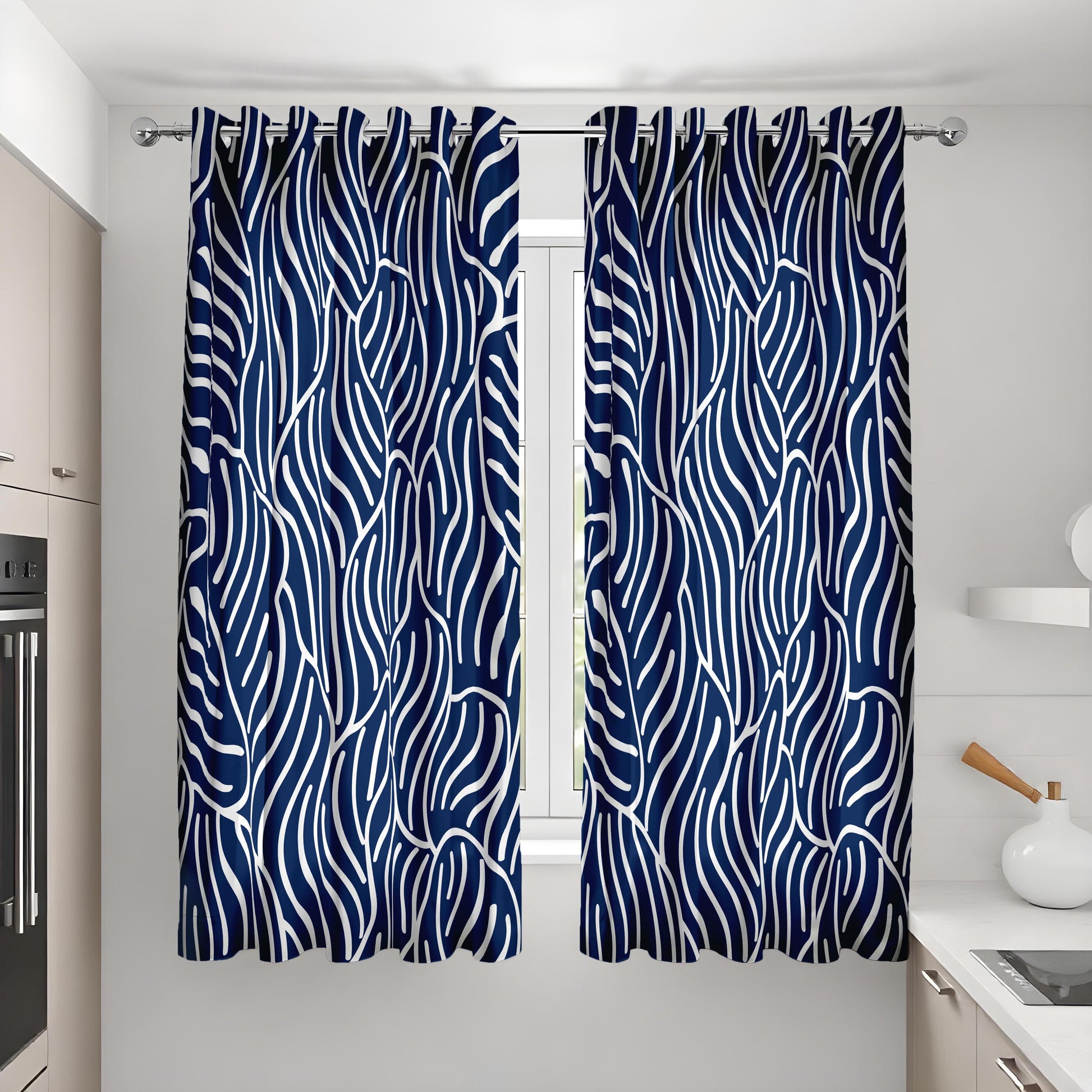 Upgrade your home with these sleek and sophisticated navy blue curtains, featuring an elegant white free-flowing abstract pattern. A perfect blend of modern minimalism and organic design, these curtains create a bold yet calming atmosphere in any space.