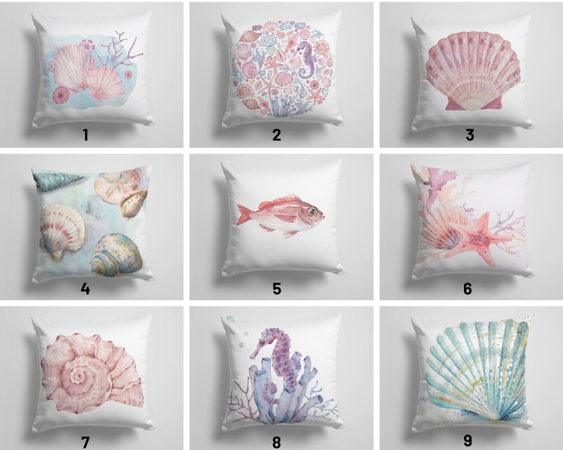 Oyster Seahorse Seashell Nautical Beach House Cushion Cover