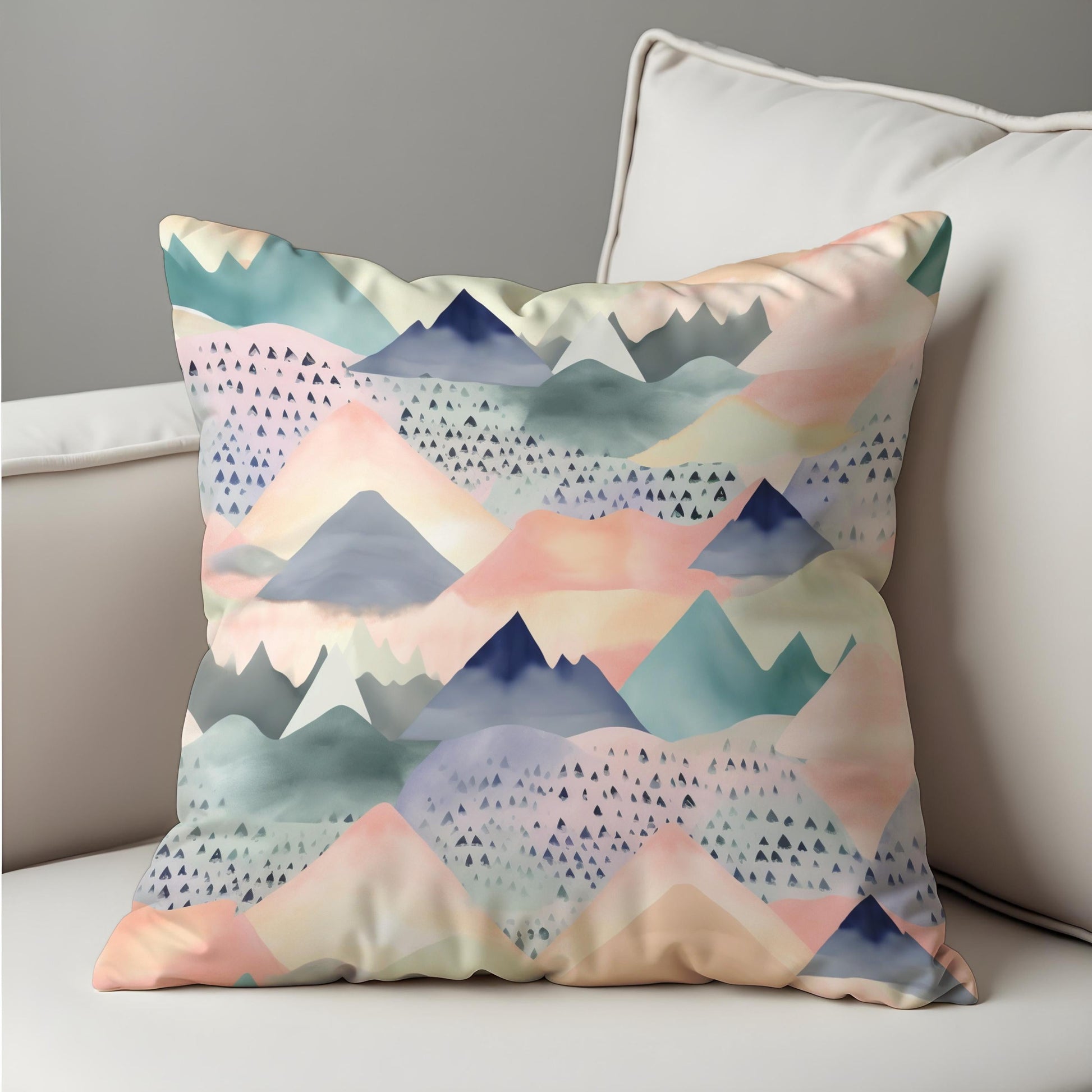 Pastel Mountain Pillow Cover, Soft Watercolor Landscape Cushion Case
