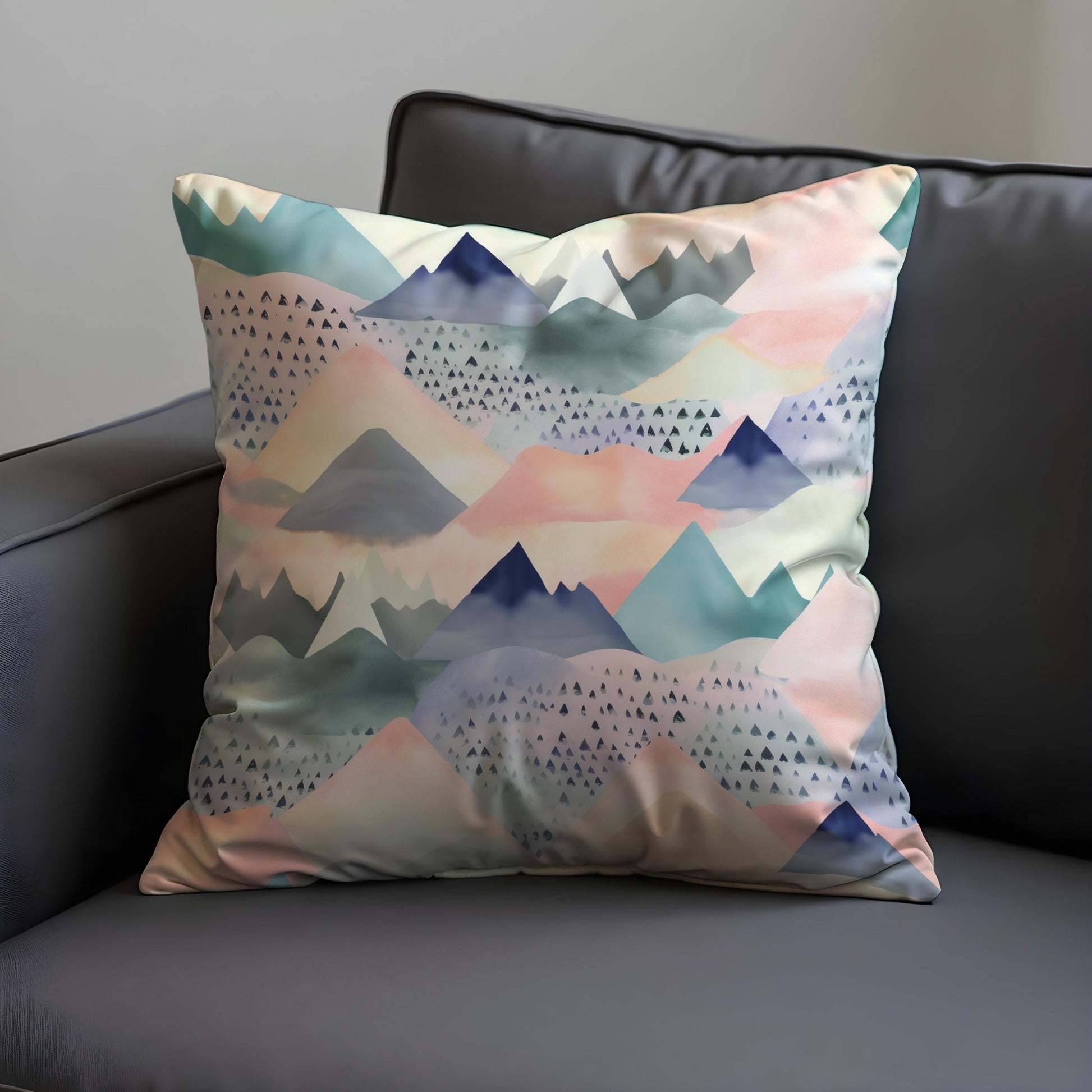 Bring a serene and dreamy atmosphere to your space with this Pastel Mountain Landscape Cushion Cover, featuring gentle watercolor peaks in soothing pastel shades of peach, blue, and lavender. A perfect piece for creating a cozy, relaxed vibe.