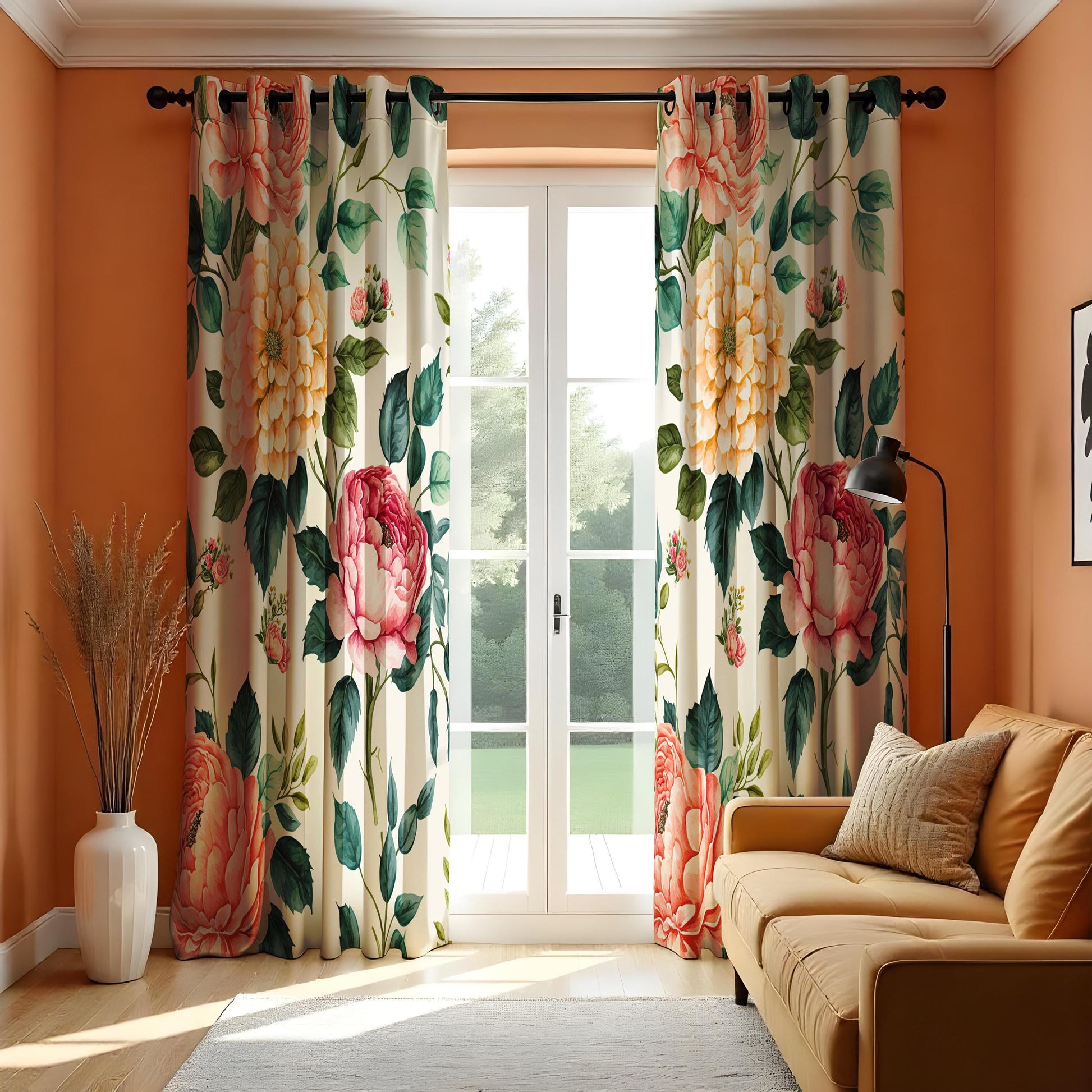 Peony Floral Curtains, Botanical Print Spring Theme Drapes