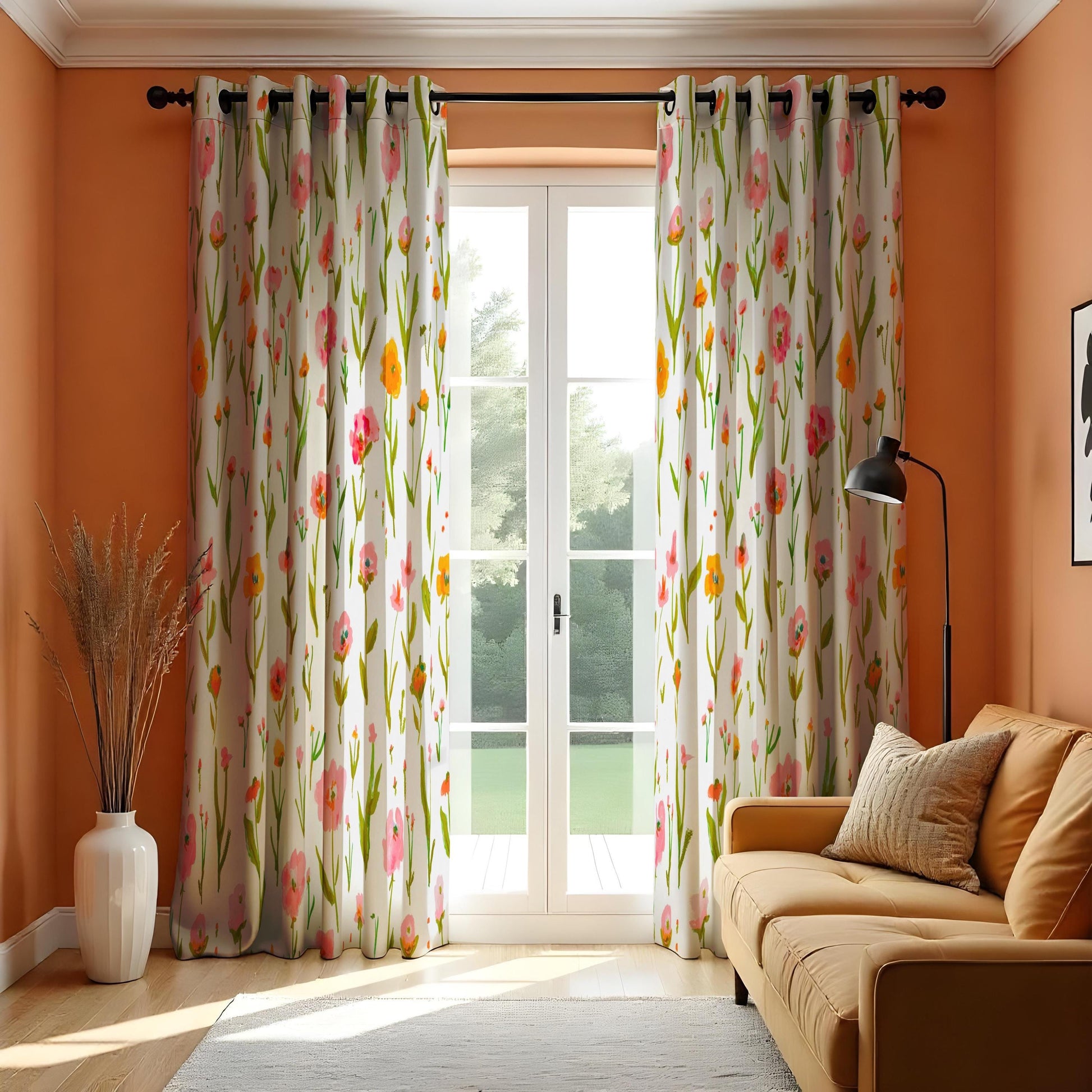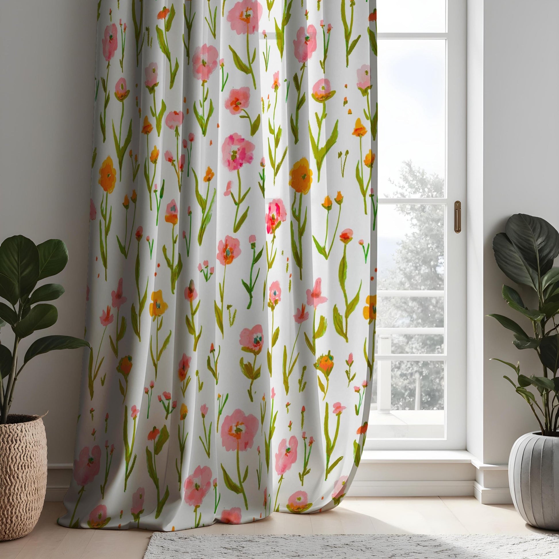 Brighten up your space with these Watercolor Wildflower Curtains, featuring a delicate hand-painted floral pattern in soft pink, warm yellow, and fresh green hues.