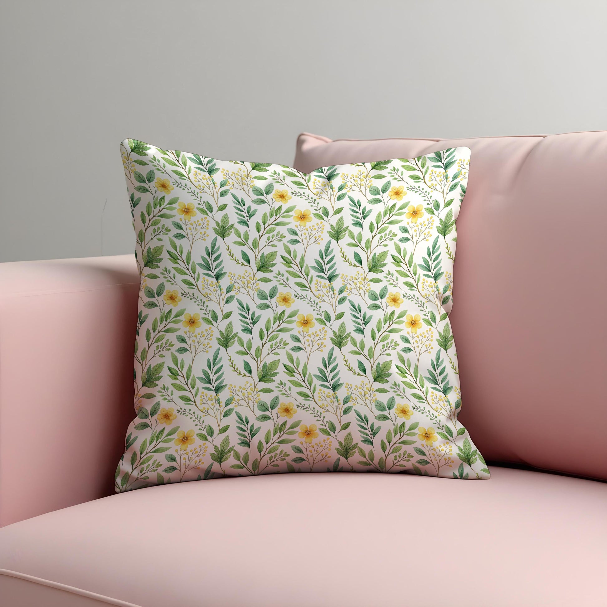 Bring sunshine and nature into your home with this Yellow Botanical Cushion Cover, featuring a charming pattern of delicate yellow flowers and lush green leaves against a soft cream background. Light, refreshing, and full of life, it’s the perfect way to brighten up any space.
