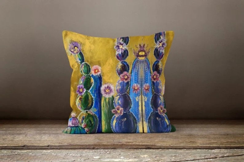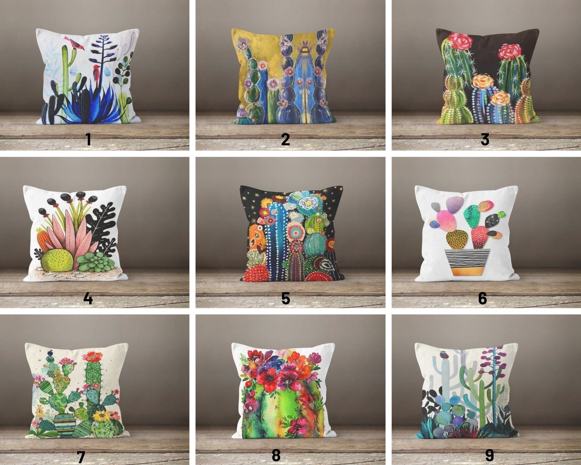 Succulent Green Pink Botanical Floral Cactus Cushion Cover