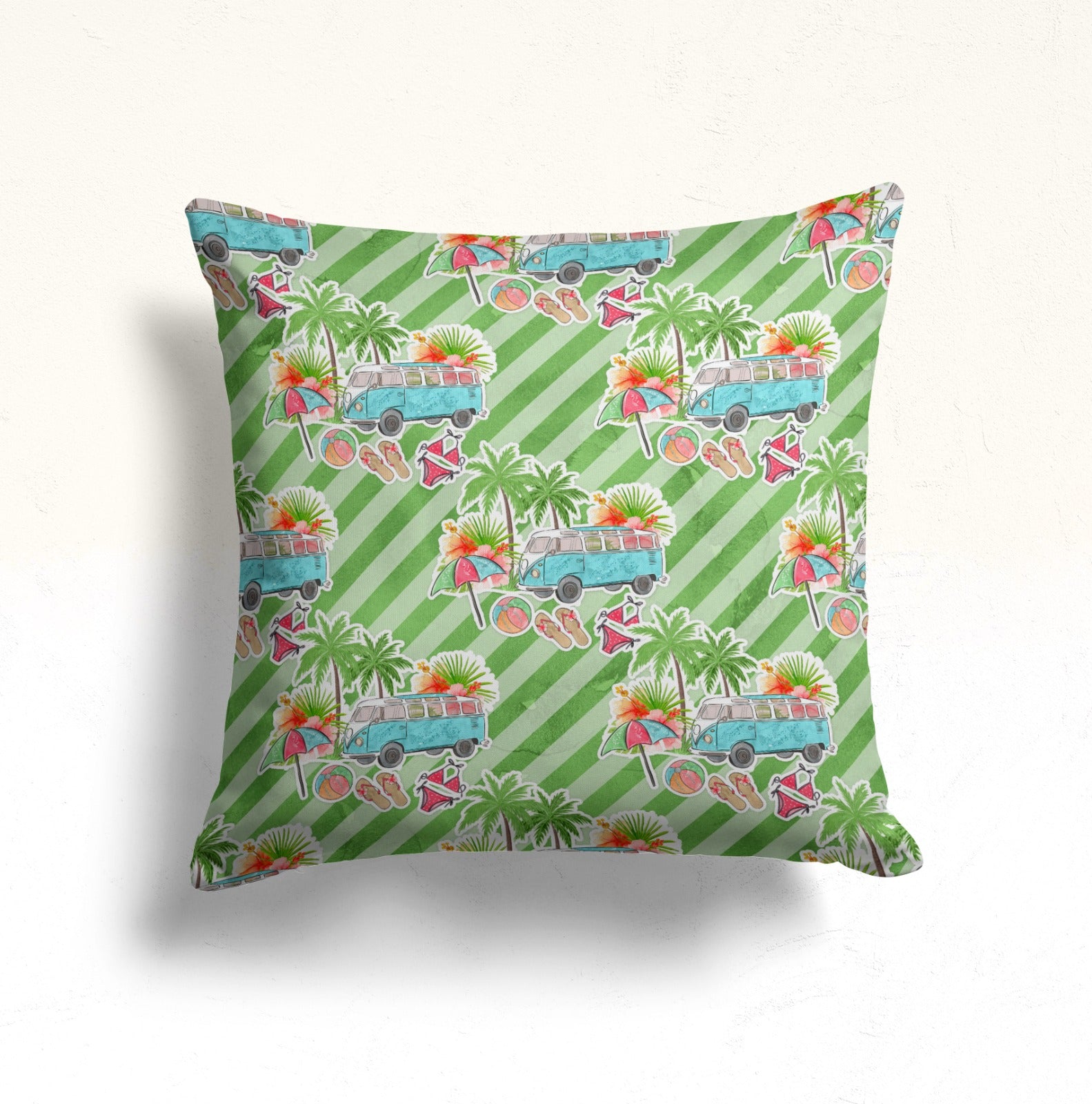 This cushion cover is ideal for turning your house into a vibrant summer resort because of its vibrant design, which features lush palm trees and tropical themes. This cover adds a touch of tropical warmth and appeal to any space, whether it's used in living rooms, bedrooms, patios, or beach home décor.