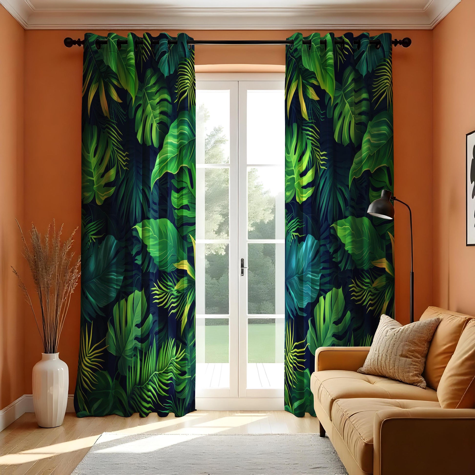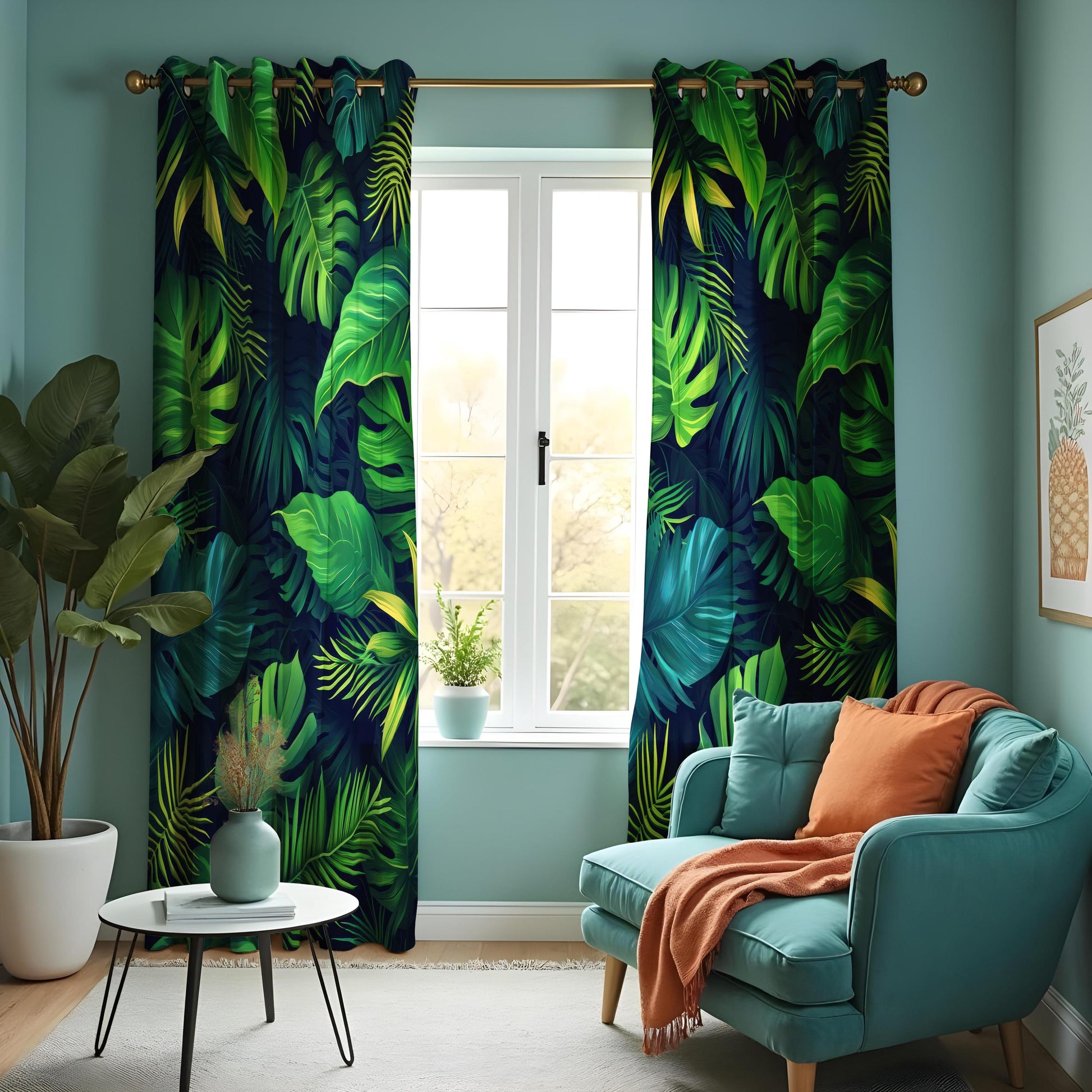 Tropical Leaf & Lush Green Curtains, Monstera and Fern Print Drapes