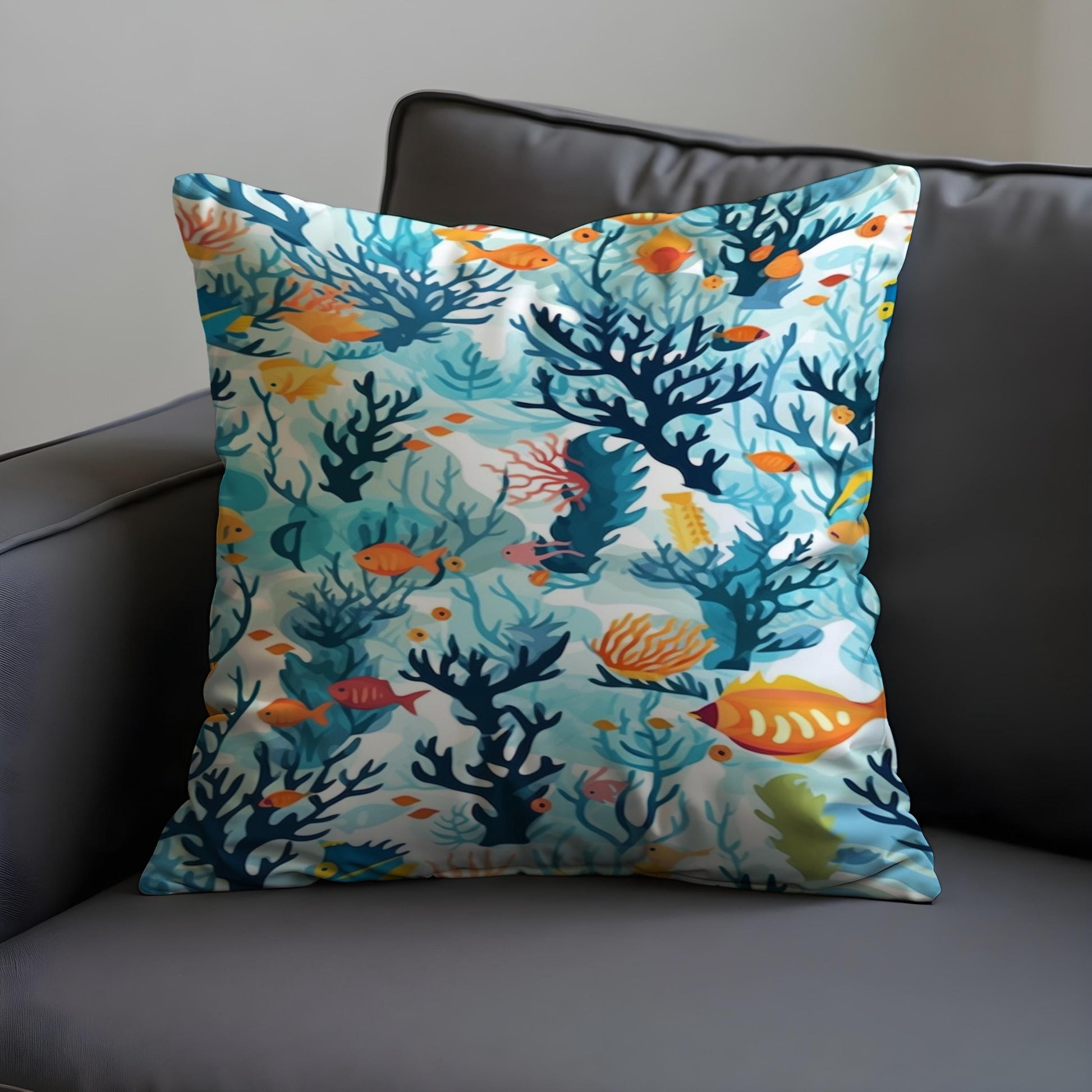 Underwater Coral Reef Cushion Cover, Fish and Sea Life Pillow Case